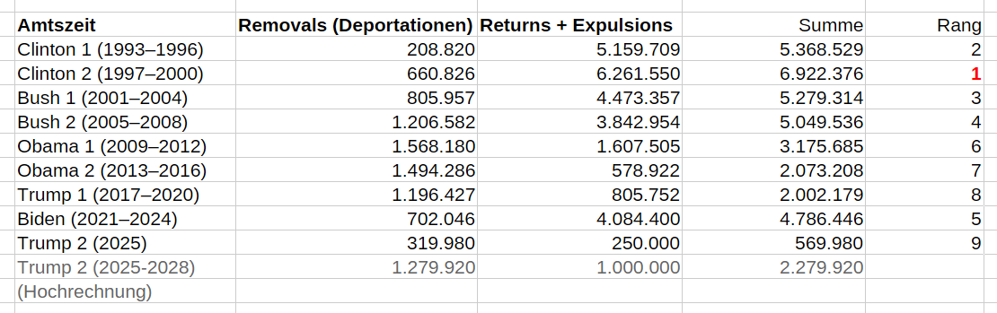 Donald Trump ist bei genauer Betrachtung der Präsident, der in den letzten 30 Jahren die wenigsten Außerlandesbringungen durchsetzen konnte – lesen Sie darüber hier.