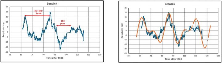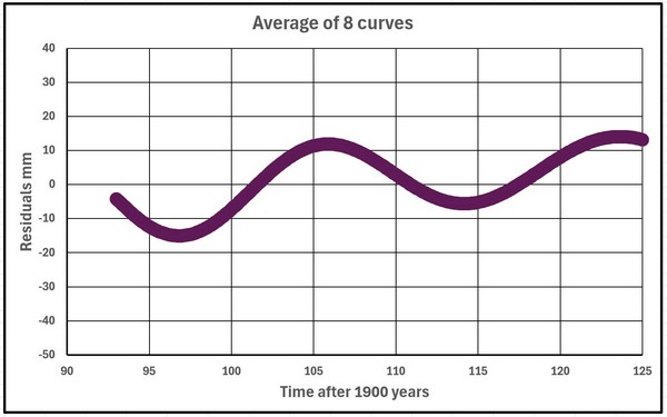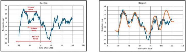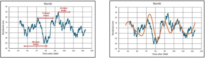 Die wichtigste Erkenntnis ist, dass jeder Gezeitenmesser zusätzlich zu den vielen Oszillationen unterhalb von 11 Jahren, die aufgrund von Strahlungsschwankungen oder El Niño/La Niña-Zyklen auftreten, zwei oder mehr Oszillationen in den Residual-Meeresspiegeln zwischen 11 und 100 Jahren aufweist. Über einen Zeitraum von 20 Jahren variieren diese Schwankungen von Messgerät zu Messgerät in ihren Perioden, und der kombinierte Effekt ist schwer zu bestimmen, aber wenn sie nicht über den nördlichen Meeren gemessen würden, würde dies die „globalen” Messwerte der Satelliten beeinträchtigen.