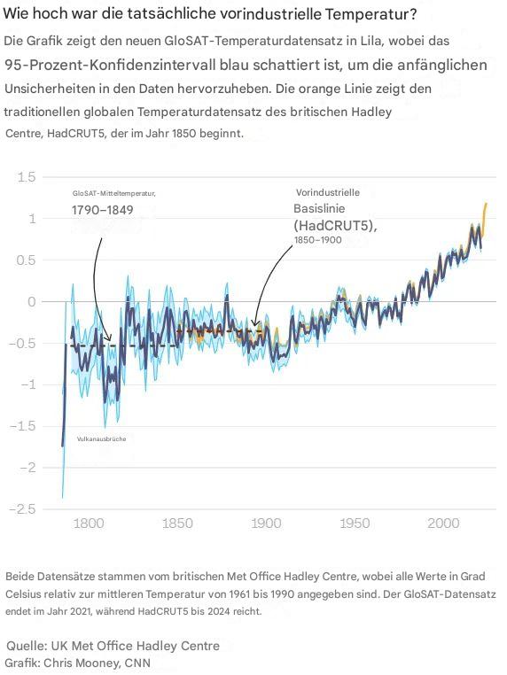 Daltons Kältetrog liegt direkt vor dem Zeitraum von 1850 bis 1900, der als „vorindustrielle” Basislinie dient. Es ist keine Überraschung, dass die Messung der modernen Erwärmung seit dem Ende dieses Tiefpunkts einen Anstieg ergibt. Ein Teil dieses Anstiegs reflektiert zweifellos eine natürliche Erholung von der vulkanischen Abkühlung. Ein weiterer wichtiger Teil ist jedoch eine Erholung der Sonnenaktivität. Eine Erklärung durch CO₂ ist nicht erforderlich.