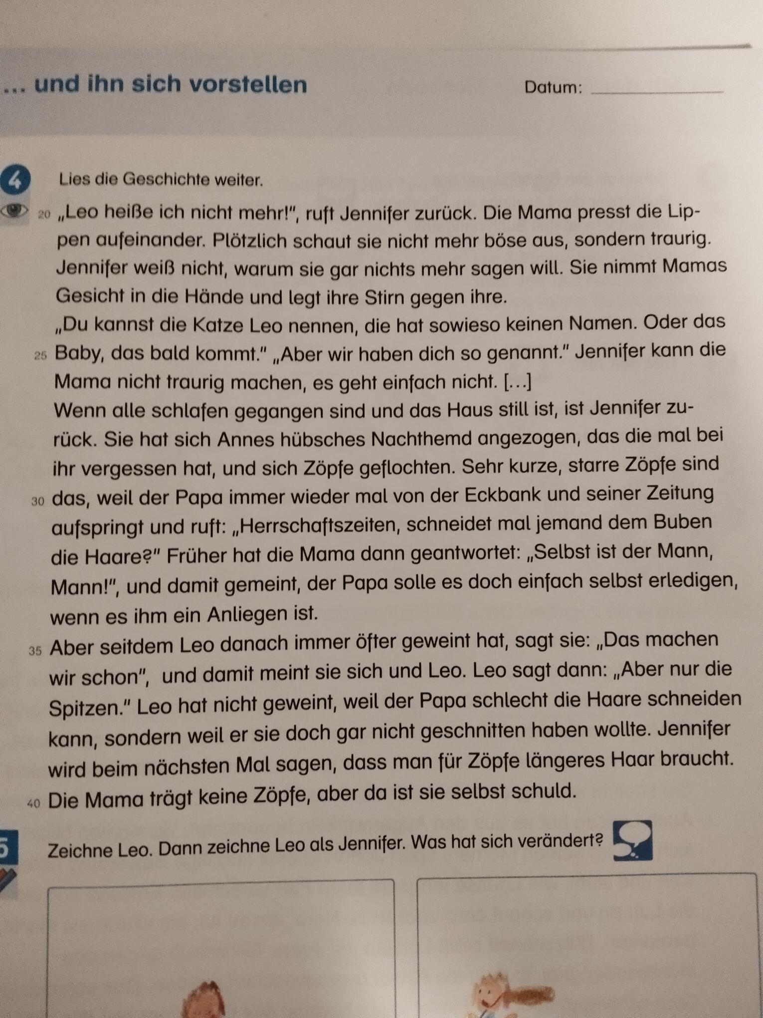 Leo hat einen schönen neuen Namen: Jennifer. Nur die Erwachsenen kapieren es erst mal nicht und glauben immer noch, sie sollte weiterhin Leo sein, ein Bub. Dabei müssten sie sich nur ein Beispiel an der Katze nehmen. Die interessiert das alles gar nicht. Und so nehmen Jennifer und ihre Freunde die Angelegenheit eben selbst in die Hand.