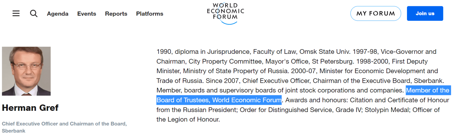 Grefs Profil zum Great Reset ist weiterhin auf der Website des WEF verfügbar: https://www.weforum.org/people/herman-gref/