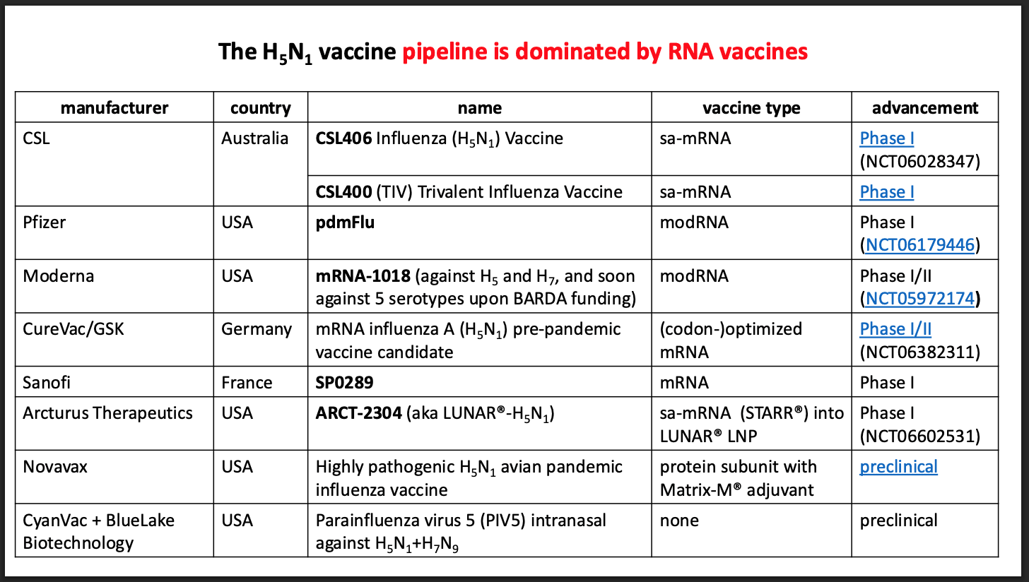 Dieselbe Pipeline ist jetzt in Echtzeit mit Modernas Phase-3-Vogelgrippe-Impfstoff sichtbar.
