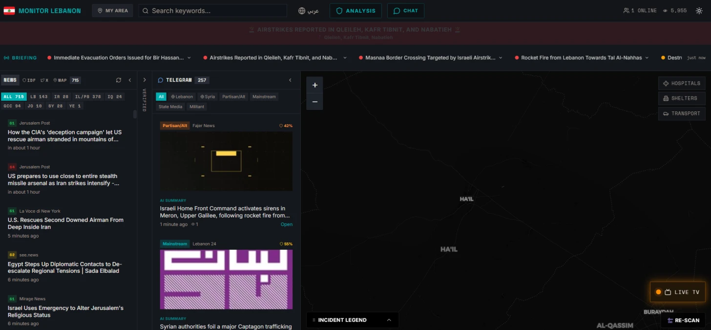 Am 7. März startete der undurchsichtige britische Geheimdienstdienstleister Siren Associates „Monitor Lebanon“. Die „Plattform zur Lageerfassung in Echtzeit“ soll „Einzelpersonen und Organisationen dabei helfen, das sich rasch wandelnde Sicherheitsumfeld im Libanon zu verstehen und sich darin zurechtzufinden“. Das Tool durchforstet riesige Mengen an „Open-Source-Informationen“ aus „Nachrichtenagenturen, verifizierten Social-Media-Konten, Telegram-Kanälen, Initiativen zur Konfliktbeobachtung und Verkehrsdatensystemen“. Präsentiert als unverzichtbare Ressource, die Journalisten, „humanitären“ Helfern, lokalen Unternehmen und besorgten Bürgern hilft, sicher zu bleiben, während sich Israels genozidale Invasion verschärft, ist die Realität weitaus finsterer.