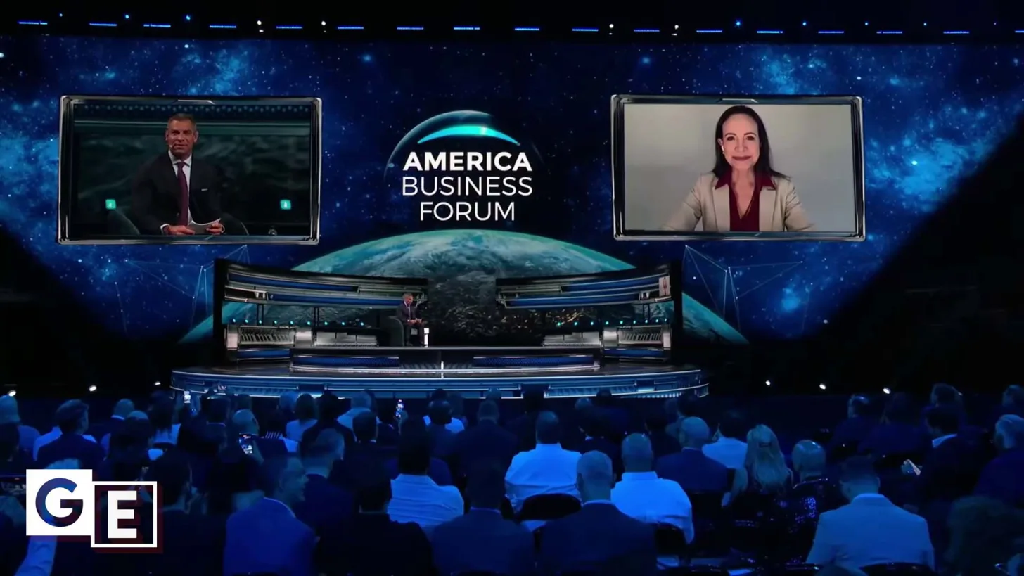 Die rechtsextreme venezolanische Oppositionsführerin äußerte sich dazu in einer virtuellen Rede beim America Business Forum am 5. November.