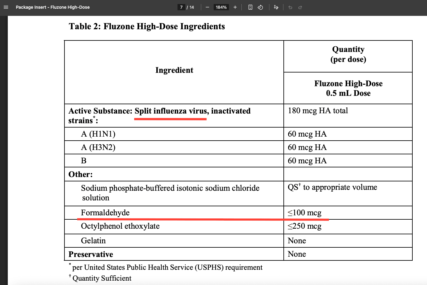 Einer der beliebtesten injizierbaren Grippeimpfstoffe in den USA, der formaldehydhaltige „Fluzone High-Dose“, ist ein inaktivierter Split-Virus-Impfstoff.