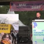(David Berger) Nach lautstarken Protesten und einem Eierwurf aus der menge, der sie allerdings verfehlte, brach Berlins Regierende Bürgermeisterin Franziska Giffey (SPD) ihre Rede ab und verließ die Versammlung. Wie sollen solche Leute den Dritten Weltkrieg oder gar einen Atomschlag überstehen, den sie derzeit durch ihre Waffenlieferungen provozieren?