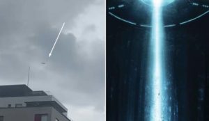 Wenn Sie genau hinschauen, sehen Sie, dass das UFO einen kreisförmigen Lichtstrahl, so etwas wie ein Energiefeld, um das Schiff aussendete, bevor es im Bruchteil einer Sekunde verschwand.