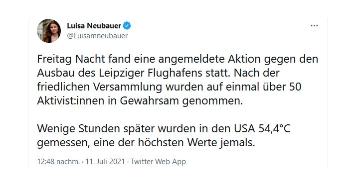 Die Dekadenz der Klima-Wohlstandskids um Luisa Neubauer und ihre Cousine Carla Reemtsma war immer schon schwer zu ertragen; doch was sich die „Fridays for Future“-Impresarios um Neubauer nun anlässlich der verheerenden Unwettern und Flutereignisse in Westdeutschland herausnimmt, sprengt alle Zumutungsgrenzen: Statt selbst tatkräftig anzupacken und die eigenen Mitglieder um Mithilfe vor Ort oder Spenden zu ersuchen, rief die Klimaaktivistin gestern zum „Streik“ auf – und nutzte die Katastrophe schamlos für die Ankündigung aus, ihre Bewegung werde fortan „mehr Druck auf die Politik ausüben„.