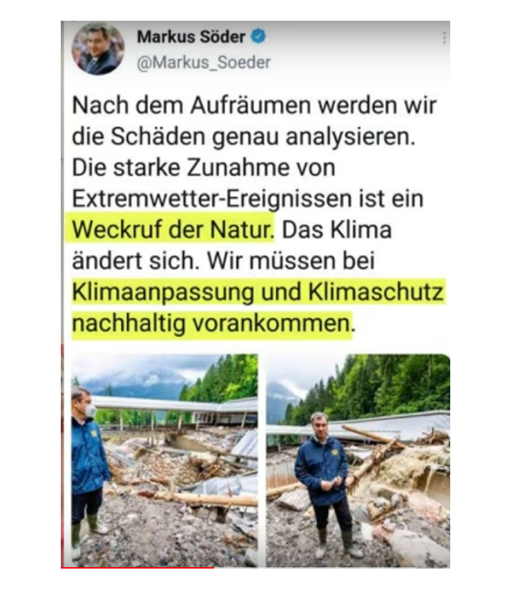 Die alternativen Medien sind voll von Informationen darüber, daß die überlaufenden Flüsse des Rheinlands und Bäche, und die zahlreichen Opfer nichts mit dem menschgemachten Klimawandel zu tun haben, sondern eher mit Wetter, suizidalen Baumaßnahmen, schlafenden WDR-Redakteuren, weltreisenden Kanzlerinnen und schlechten Entscheidungen der Landesregierung.