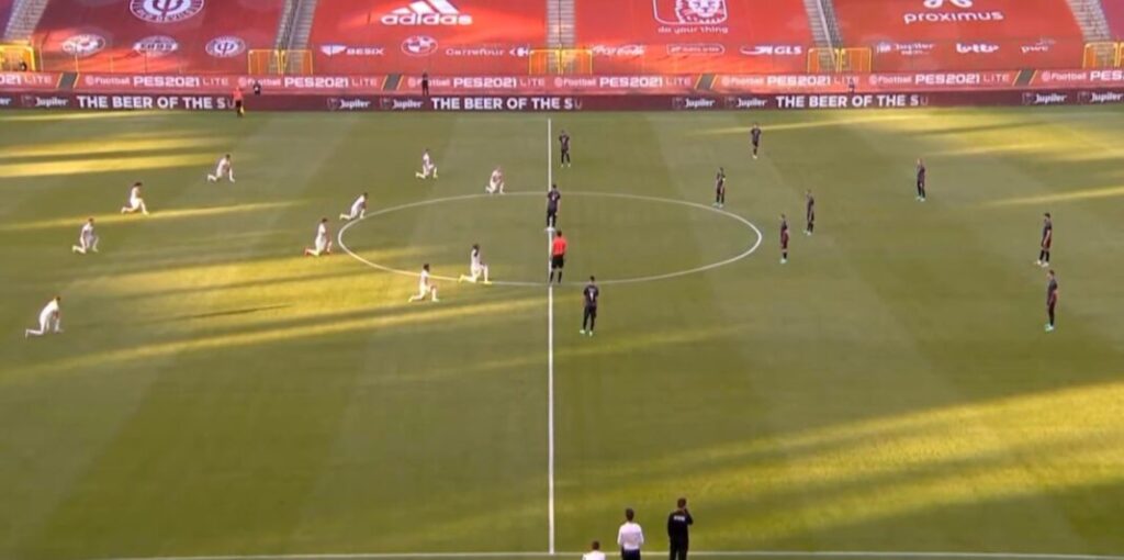 Sowohl Belgiens „Rote Teufel“ als auch der Schiedsrichter des Spiels, der Spanier Antonio Mateu Lahoz, haben diese Geste bereits am 12. Juni vor dem Spiel gegen Russland gemacht. Die englischen Spieler taten dasselbe am 13. Juni vor Beginn des Spiels gegen Kroatien.