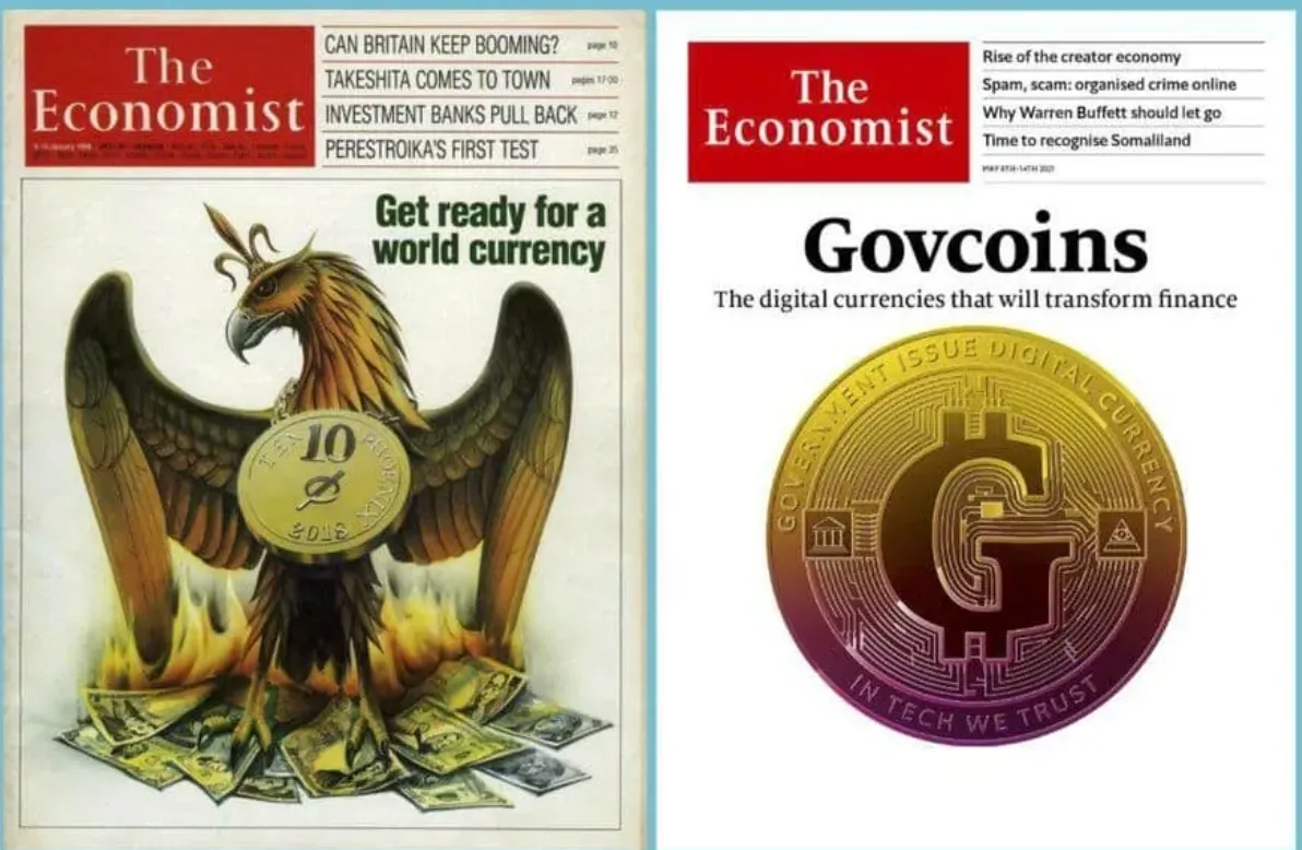 Der Weg zur finanziellen Kontrolle war kein Zufall. Auf dem Cover des Economist von 1988 wurde eine „Weltwährung” vorhergesagt, die bis 2018 aus der Asche der nationalen Währungen entstehen sollte – genau zu dem Zeitpunkt, als sich die Entwicklung von Kryptowährungen und CBDCs beschleunigte. Im Jahr 2021 feierte dieselbe Publikation „Govcoins” als unvermeidlich und ersetzte „In God We Trust” durch „In Tech We Trust”. Diese 33-jährige Entwicklung von der Vorhersage bis zur Feier offenbart den bewussten Zeitplan für die Abschaffung der Währungshoheit.