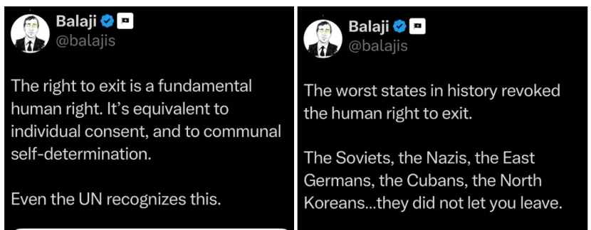 Die Durchsetzung erfolgt nicht durch brutale Schlägertrupps, sondern durch bürokratische Strangulierung. Die Geschichte zeigt uns dieses Muster: Die schlimmsten totalitären Staaten haben Dissidenten nicht nur inhaftiert, sondern ihnen auch die Ausreise unmöglich gemacht. Wie Balaji Srinivasan kürzlich auf X bemerkte: „Das Recht auf Ausreise ist ein grundlegendes Menschenrecht. Es entspricht der individuellen Zustimmung und der kommunalen Selbstbestimmung. Selbst die UNO erkennt dies an. Die schlimmsten Staaten der Geschichte haben das Menschenrecht auf Ausreise aufgehoben. Die Sowjets, die Nazis, die Ostdeutschen, die Kubaner, die Nordkoreaner … sie ließen dich nicht gehen.“