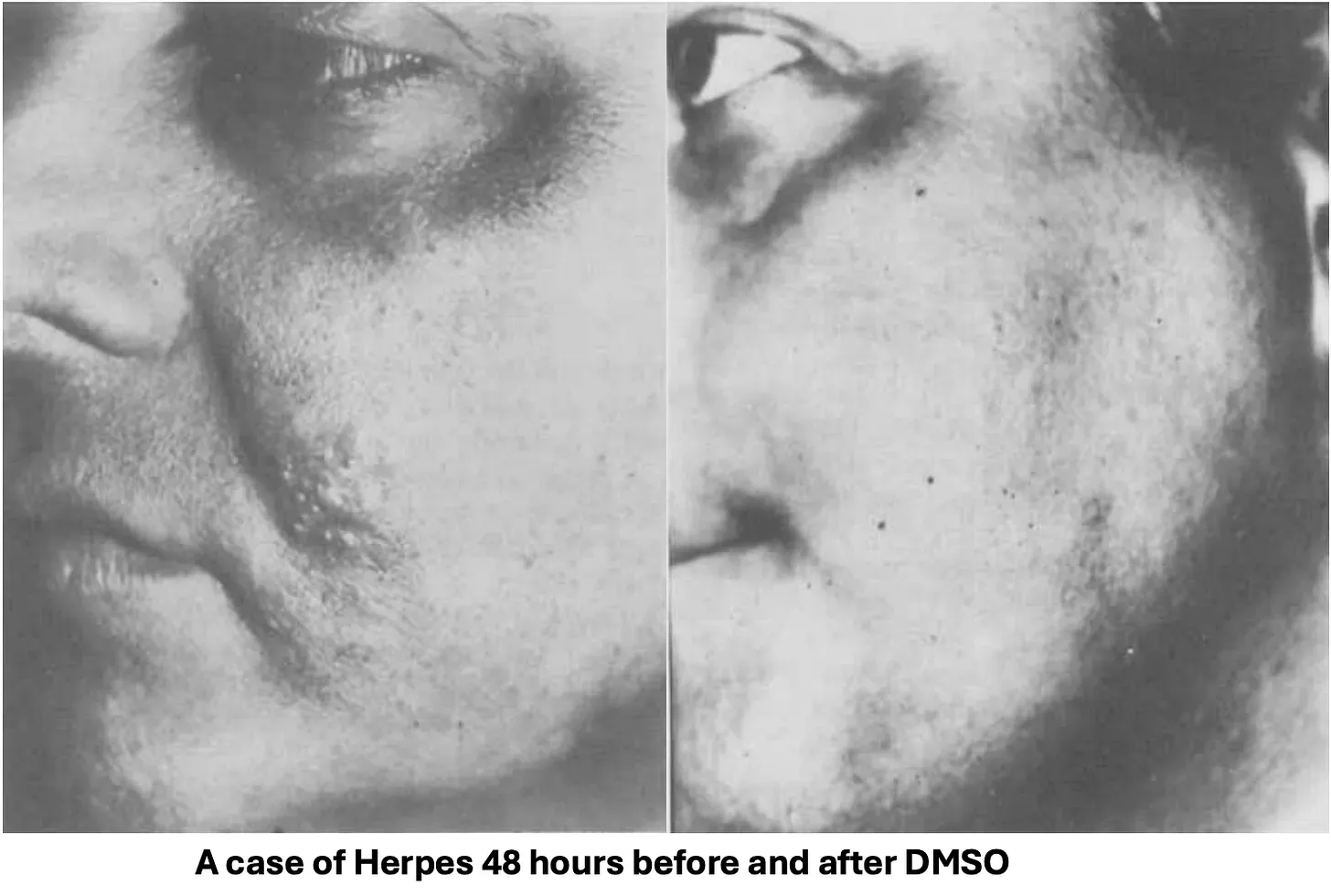 Mehrere Studien zeigen, dass DMSO in Kombination mit IDU oder Acyclovir Ausbrüche drastisch verkürzt, Rezidive reduziert und sogar bei hartnäckigen Fällen an Genitalien, Gesicht oder Fingern wirkt.