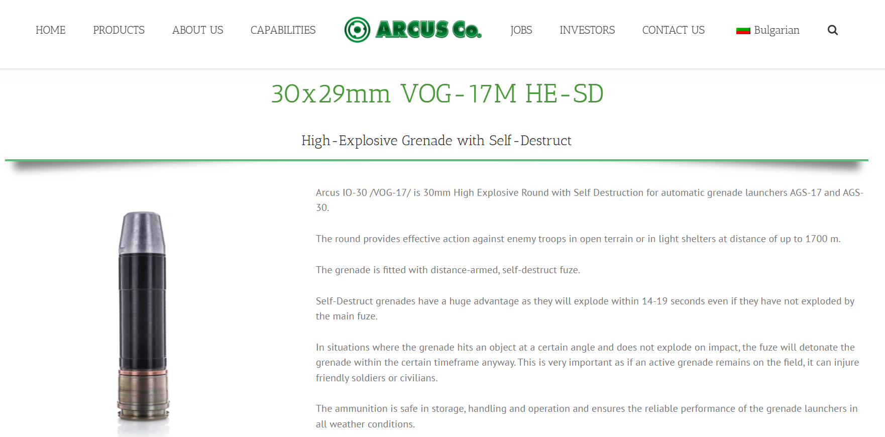 Der Hersteller des VOG-17M ist die bulgarische Waffenfabrik Arcus.