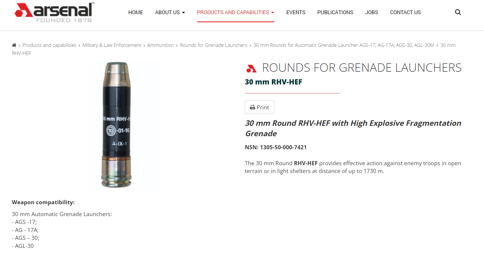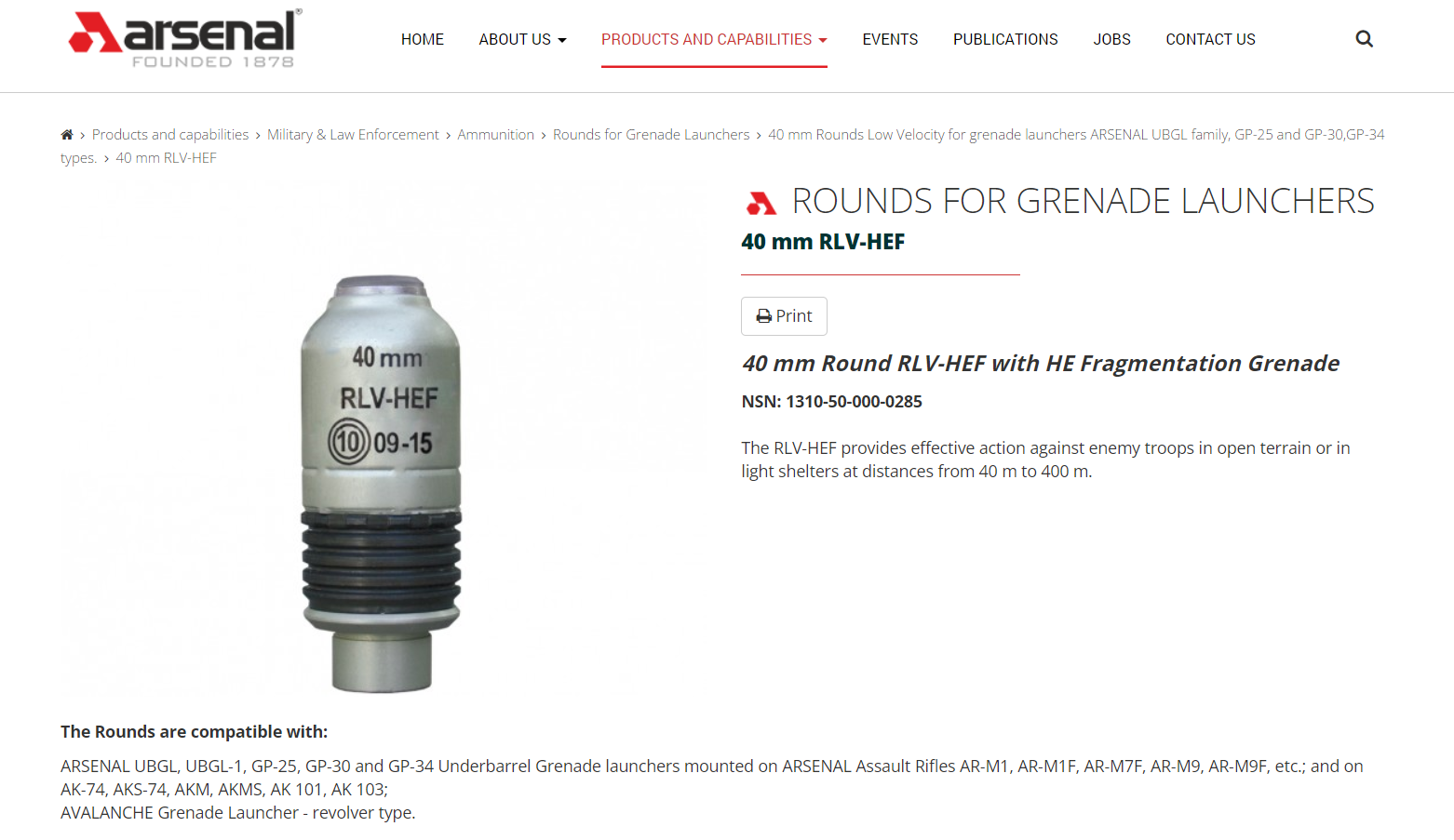 40 mm Runde RLV-HEF für Granatwerfer, Hersteller Arsenal-BulgariaQuelle: arsenal-bg.com