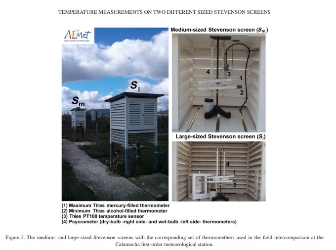 3. Ein Vergleich mit nahe gelegenen Stationen hat gezeigt, dass die unterschiedliche Größe der natürlich belüfteten hölzernen Wetterhütten einen Einfluss auf die mittlere, maximale und tägliche Lufttemperatur hat. Untersuchungen dieser Art sind entscheidend, um Inhomogenitäten zu beseitigen und die räumlich-zeitliche Variabilität und langfristigen Trends der Temperaturmessungen in Bodennähe genau zu bewerten.