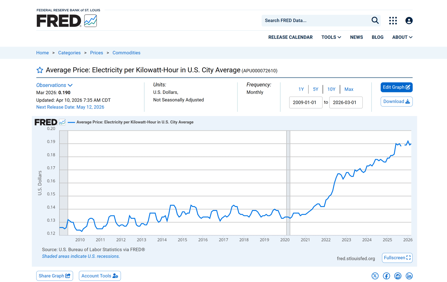 Und es gab kaum eine Steigerung der amerikanischen Kapazität zur Stromerzeugung, so dass, sobald neue Stromnachfrage hinzukommt, der Strompreis für alle gestiegen ist.
