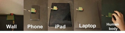 Das Team experimentierte mit verschiedenen Alltagsgegenständen, um die gewonnene Energie zu verstärken, und entdeckte, dass der menschliche Körper eines der besten Materialien ist. Credit: Cui et al., 10.1145/3560905.3568526