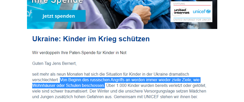 United Internet und UNICEF mit klassischer Kriegspropaganda