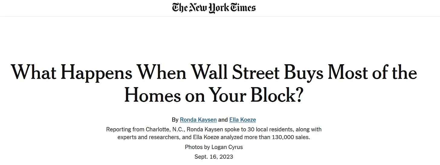 Die New York Times veröffentlichte einen Artikel, in dem erklärt wurde, wie Finanzunternehmen der Wall Street praktisch alle Wohnhäuser in ganzen Stadtvierteln in den USA aufkaufen.