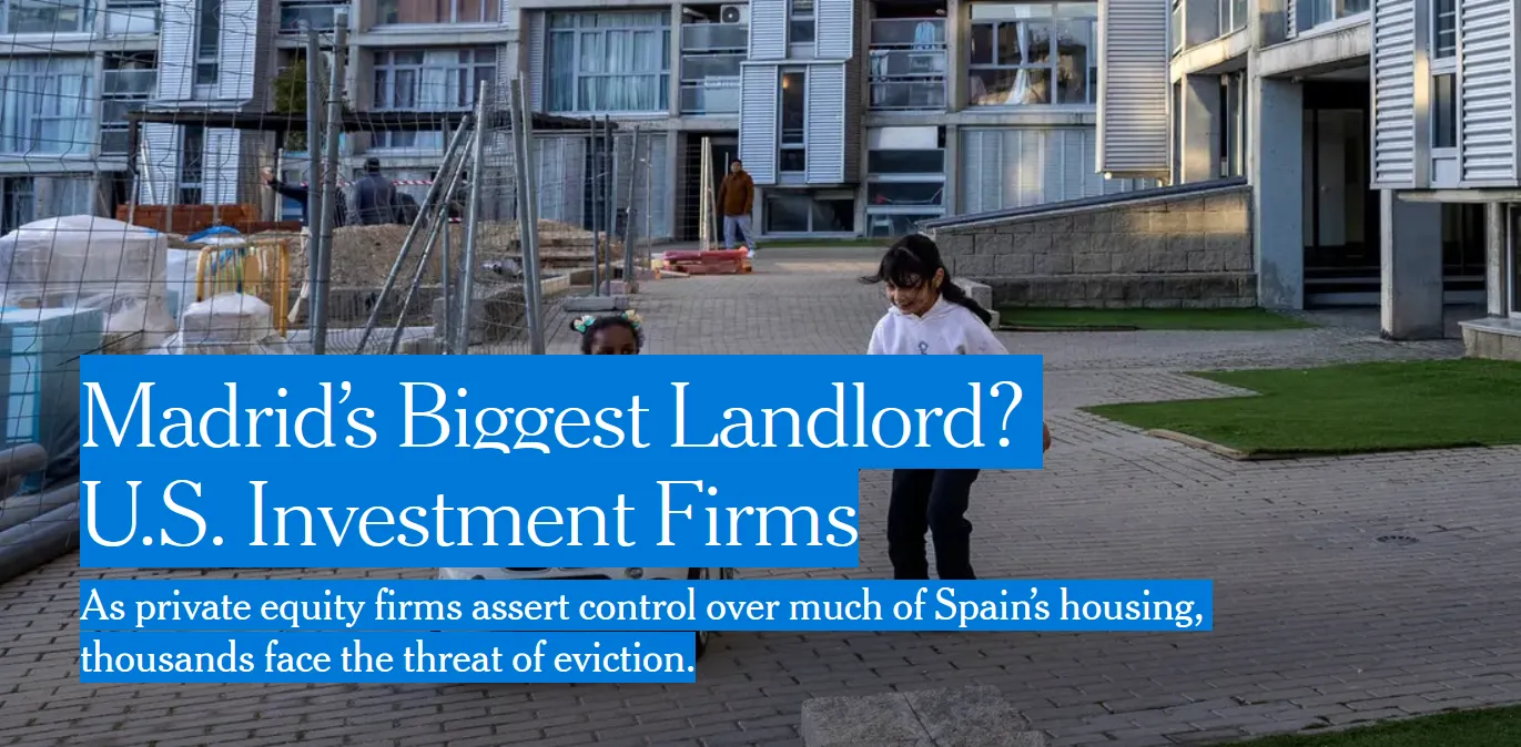 Die New York Times berichtete, dass „in ganz Spanien mittlerweile rund 185.000 Mietobjekte im Besitz großer Unternehmen sind, die Hälfte davon im Besitz von Firmen mit Sitz in den Vereinigten Staaten“, vor allem an der Wall Street.