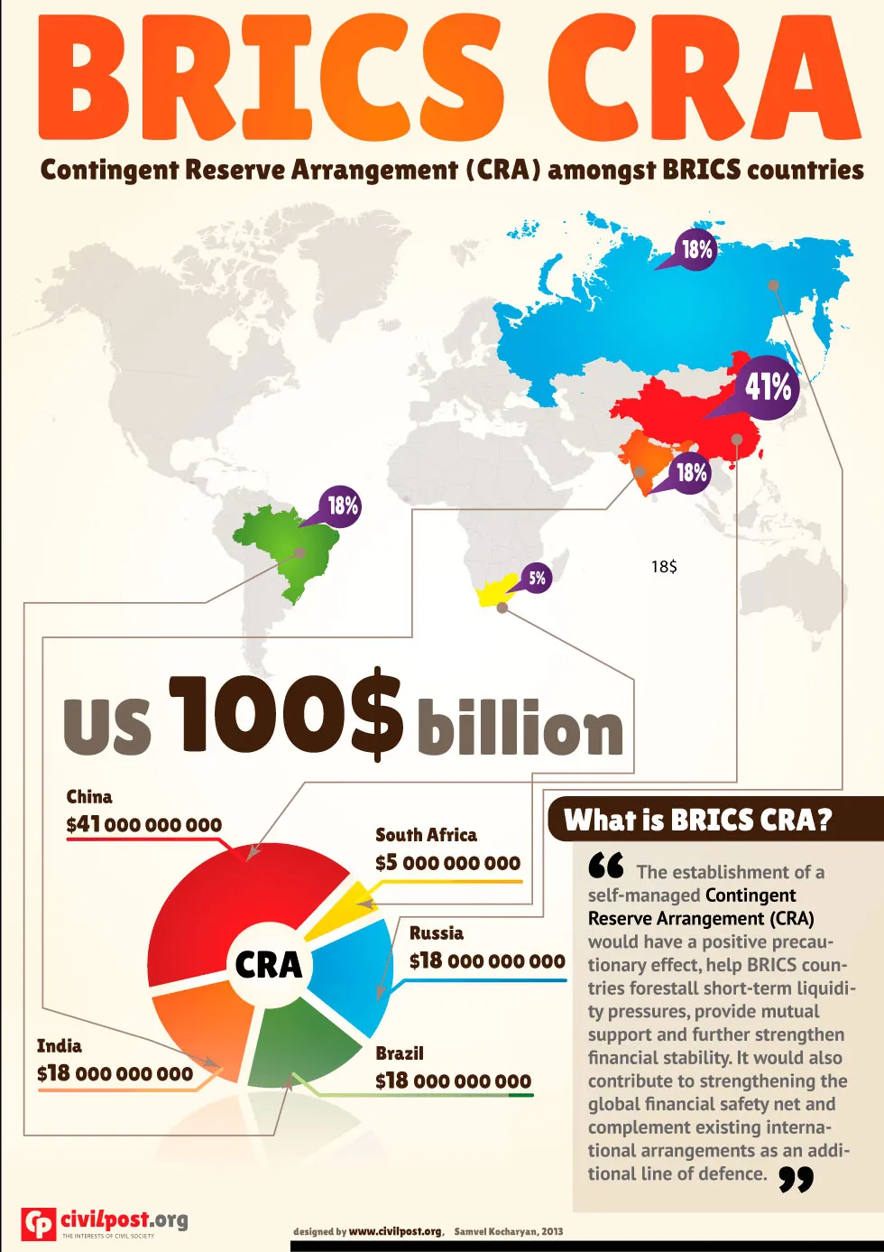 Und sie haben auch die schlecht benannte Contingent Reserve Arrangement (CRA), die als Alternative zum IWF geschaffen wurde. Die CRA befindet sich noch in einem sehr frühen Stadium. Es gibt noch viel zu tun.