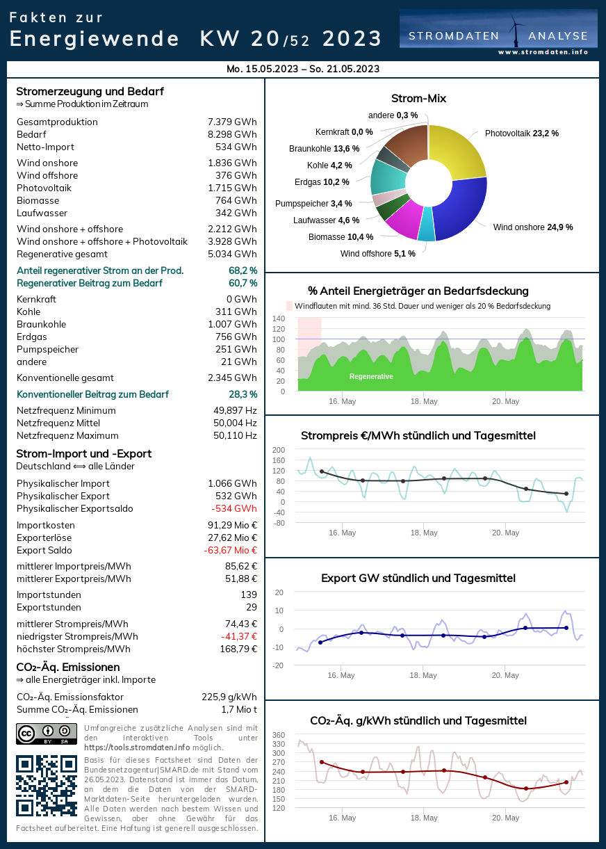 Belege für Werte und Aussagen im Text oben, viele weitere Werte sowie Analyse- und Vergleichsmöglichkeiten bietet der Stromdateninfo-Tagesvergleich zum 23. Mai ab 2016.